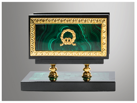 арт.МП-113 У. Подставка под визитки или бумаги для записей из малахита"Классика-У"