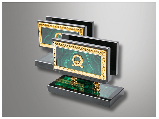 арт.МП-113 У. Подставка под визитки или бумаги для записей из малахита"Классика-У"